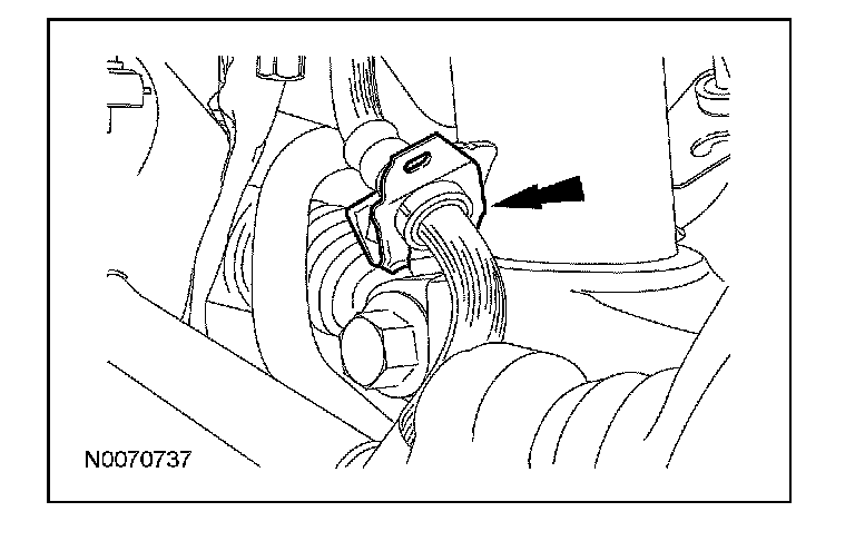 6. Remove the retainer holding the brake tube in the strut bracket.