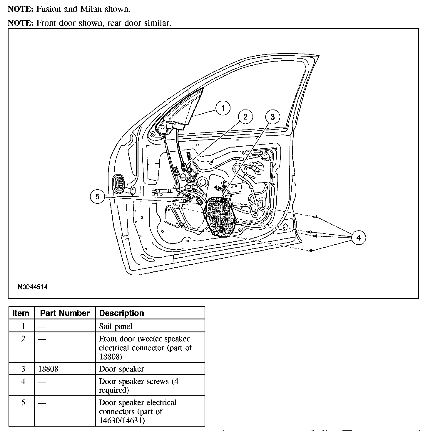 3. Remove the 2 screws and the front door tweeter speaker from the sail panel.