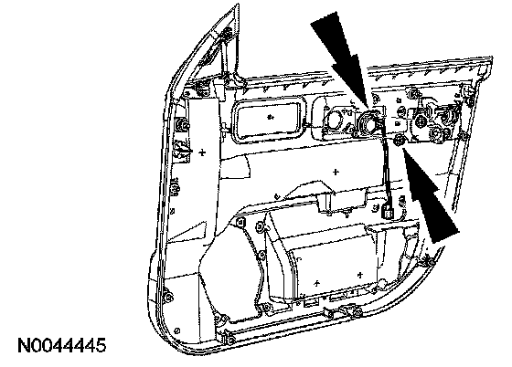 4. Remove the 2 nuts and the front door tweeter speaker from the door trim panel.