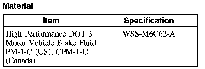CAUTION: Brake fluid is harmful to painted and plastic surfaces. If brake fluid is spilled onto a painted or plastic surface, immediately wash it with water.