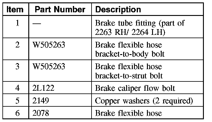 1. Remove the brake caliper flow bolt and discard the 2 copper washers.