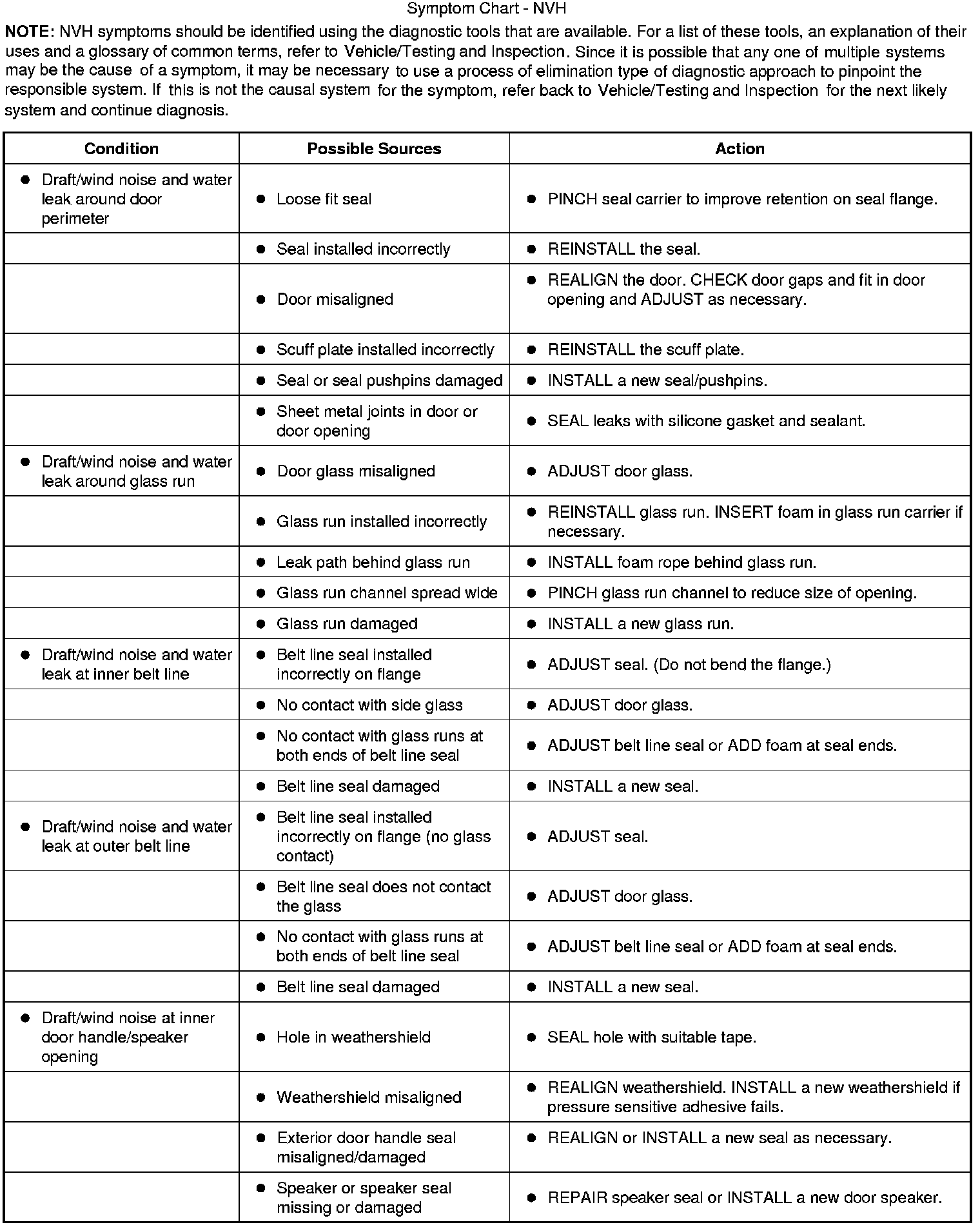 Symptom Chart - NVH