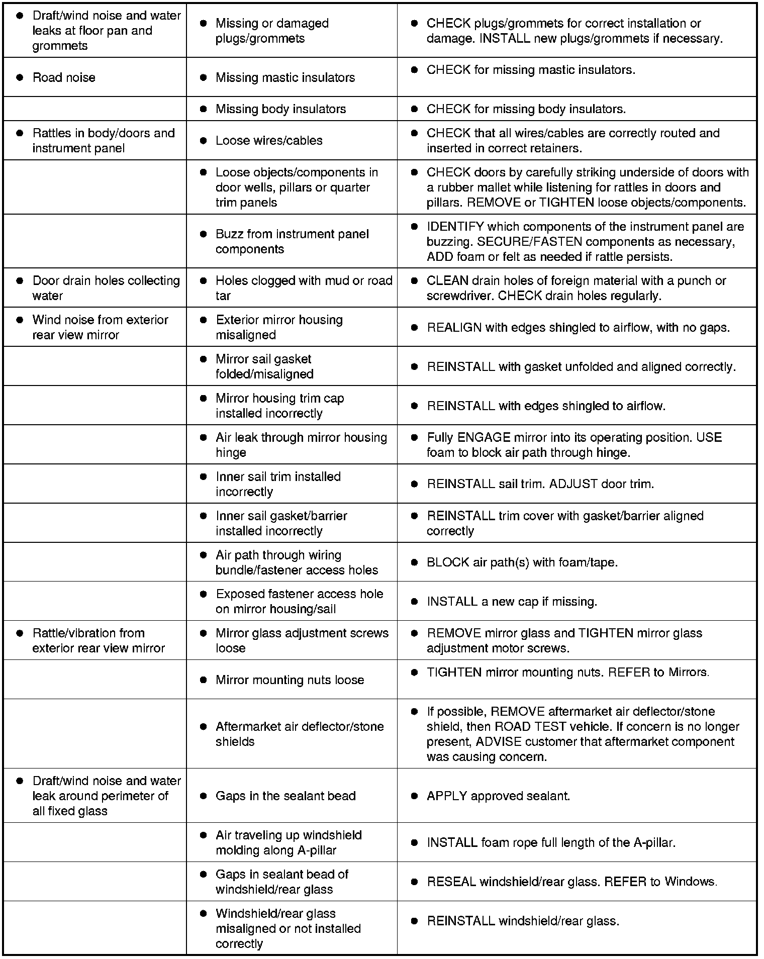 Symptom Chart - NVH (Part 2):