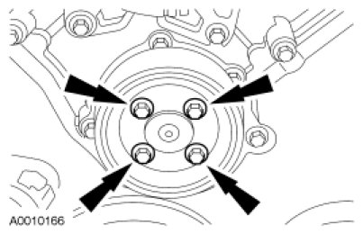 43. Remove the bolt and the accessory drive belt idler pulley.