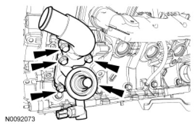 NOTICE: During engine repair procedures, cleanliness is extremely important. Any foreign material (including any material created while cleaning gasket surfaces) that enters the oil passages, coolant passages or the oil pan may cause engine failure.