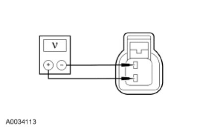 - With the engine running, measure the voltage between A/C compressor clutch field coil C100-2, circuit 57 (BK), harness side and A/C compressor clutch field coil C100-1, circuit 321 (GY/WH), harness side.