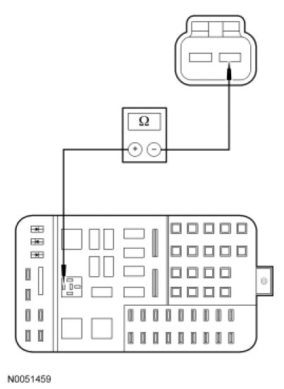 - Measure the resistance between blower motor relay socket pin 87, circuit 371 (PK/WH), and blower motor C1227-1, circuit 371 (PK/WH), harness side.