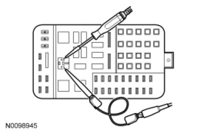 NOTICE: The following step uses a test light to simulate normal circuit loads. Use only the test lamp recommended in the Special Tools table at the beginning or equivalent. To avoid connector terminal damage, use the Rotunda Flex Probe Kit for the test light probe connection to the vehicle. Do not use the test lamp probe directly on any connector.