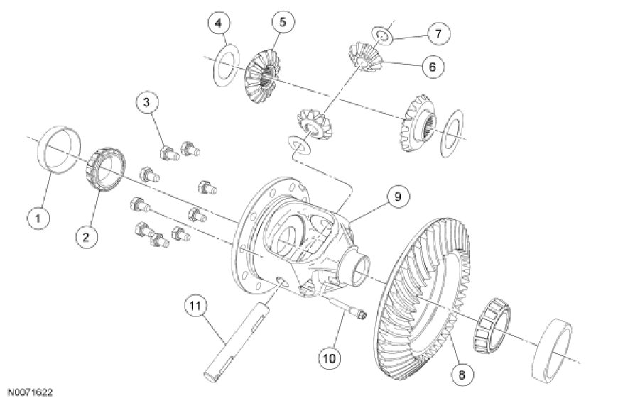 12. Install the differential assembly. For additional information, refer to Differential Carrier Differential Carrier.