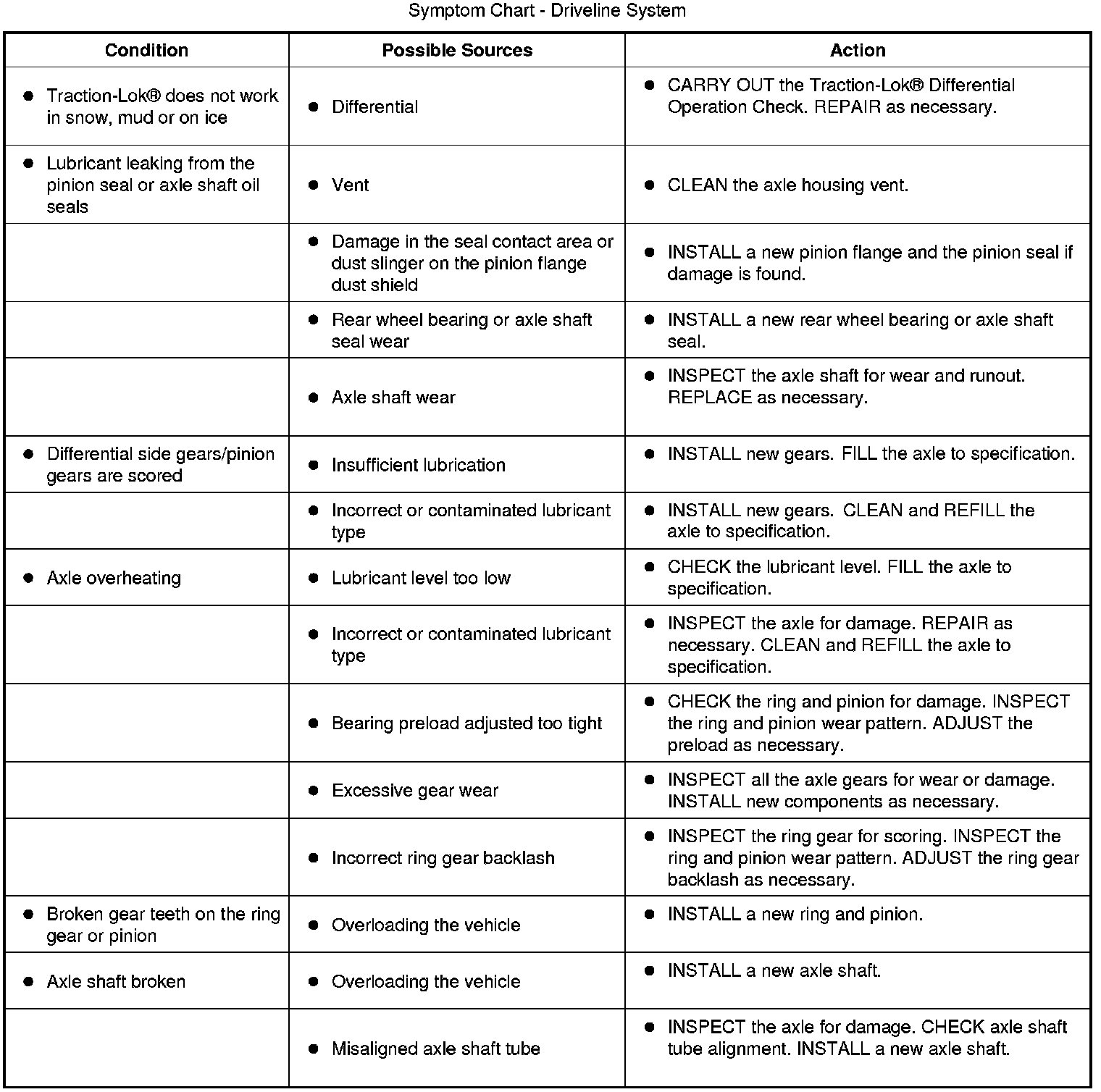 Symptom Chart - Driveline System