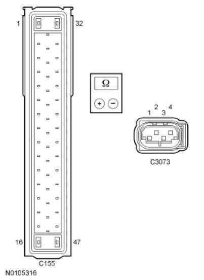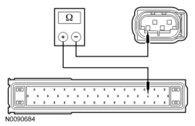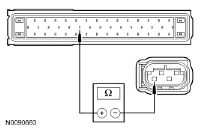 - Measure the resistance between sensor cluster C3073-4, circuit CCA09 (VT/BN), harness side and ground.