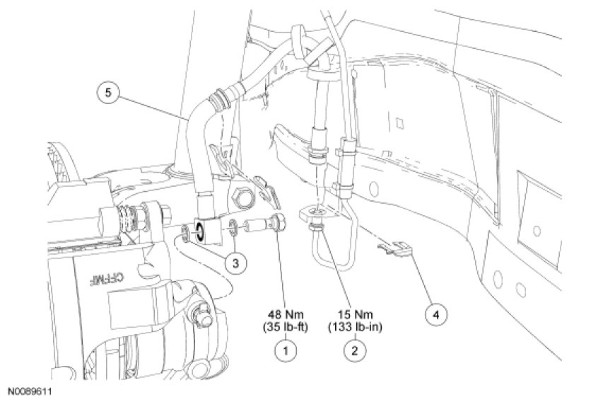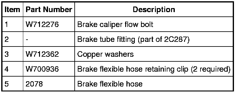 1. Remove the brake caliper flow bolt and discard the 2 copper washers.