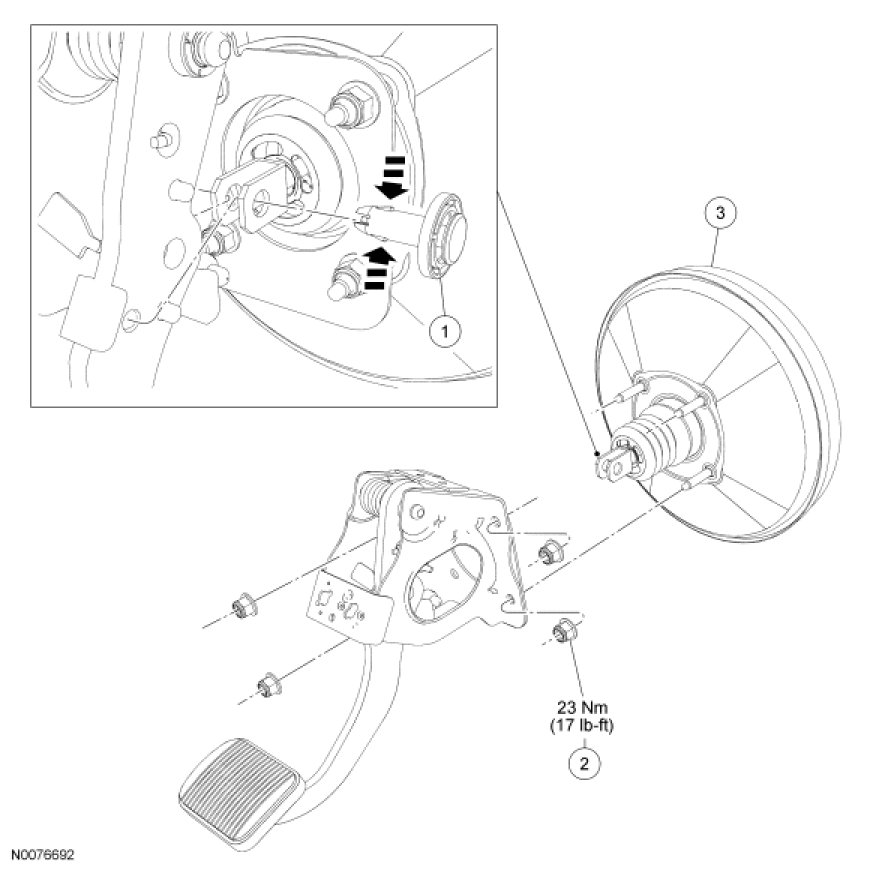 - Disconnect the brake booster actuating rod from the brake pedal.