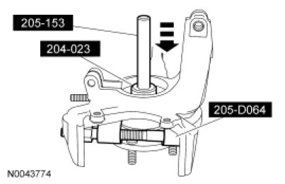 4. NOTICE: The Bearing Puller and Bushing Remover/Installer must be used to prevent damage to the hub. If the hub is damaged, a new hub must be installed.