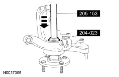 4. Install the wheel knuckle. For additional information, refer to Wheel Knuckle Service and Repair.