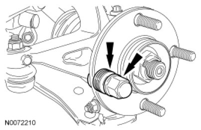 3. Remove the wheel nut and the washers. Discard the wheel nut.