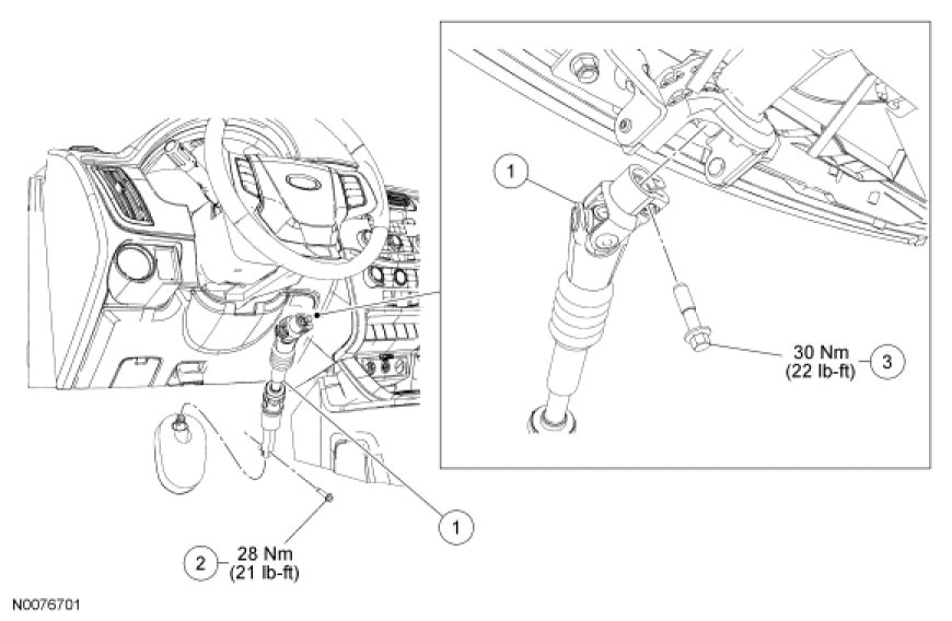 2. Remove and discard the upper steering column shaft-to-steering column bolt.