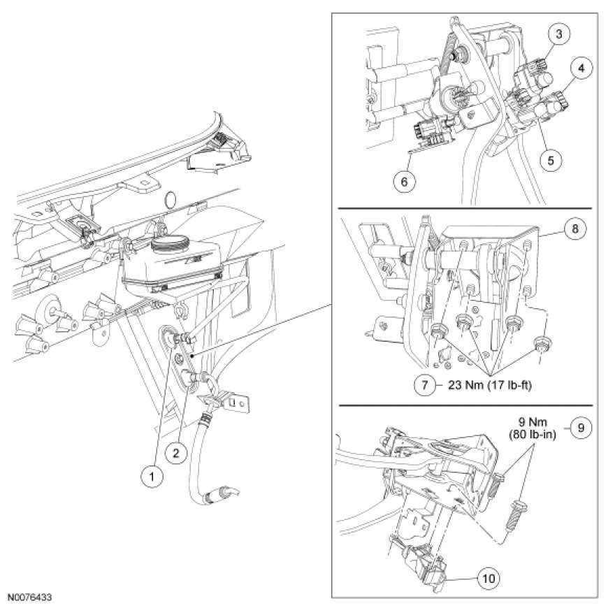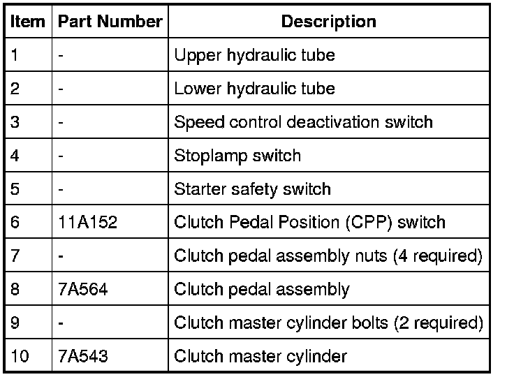 12. NOTE: The complete clutch pedal assembly and the clutch master cylinder must be removed to gain access to the clutch master cylinder bolts.