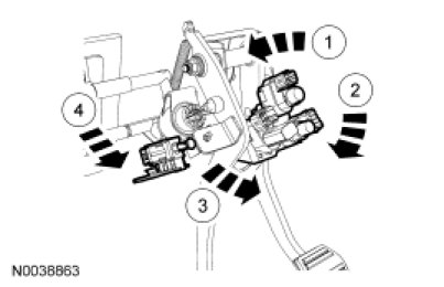 10. Disconnect the starter safety switch, clutch position switch, speed control deactivation switch and brake lamp switch electrical connectors from the pedal assembly.