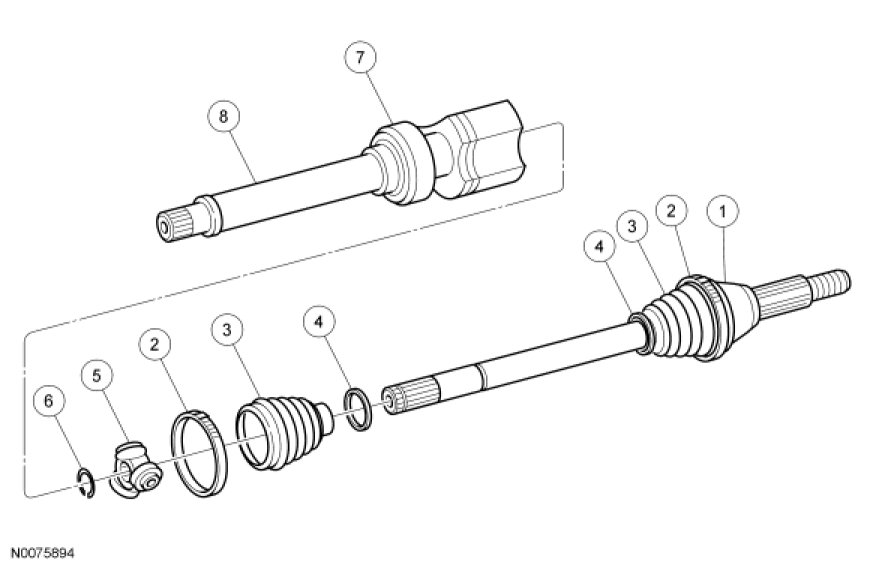 1. Remove the RH halfshaft assembly. For additional information, refer to Halfshaft - RH Halfshaft - RH.