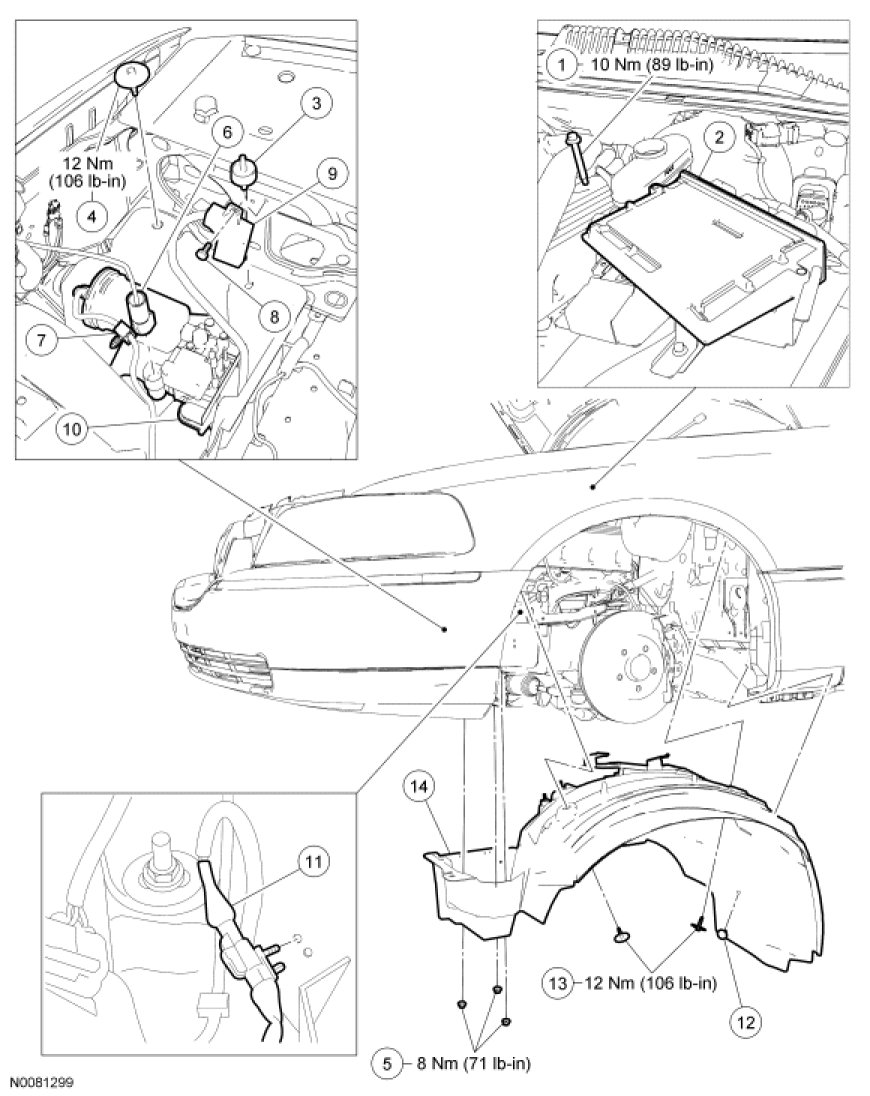 1. With the vehicle in NEUTRAL, position it on a hoist. For additional information, refer to Jacking and Lifting Service and Repair.