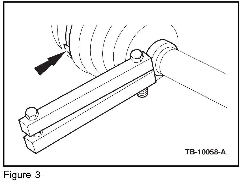 9. Using special service tool 205-343 (constant velocity joint boot clamp installer) or equivalent, install the new CV boot clamp. (Figure 3)