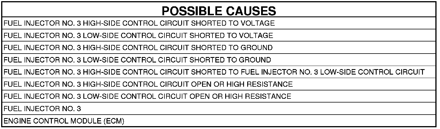 3. FUEL INJECTOR NO. 3 LOW-SIDE CONTROL CIRCUIT SHORTED TO VOLTAGE