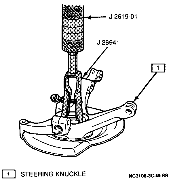 3. Hub and outer spacer from knuckle using a J34866 and a J2619-01.
