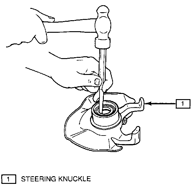5. Outer bearing: drive out from the inboard side of the knuckle using a hammer and punch work around the perimeter of the bearing.