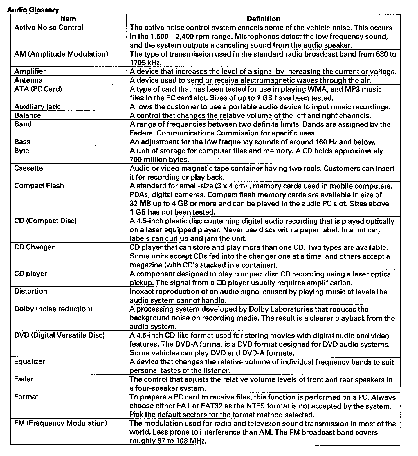 The navigation system allows voice control of the audio, XM, PC card, and CD player. Voice control commands are communicated on the GA-Net (audio unit). When using the TALK/BACK button, the audio is muted on all speakers and you get navigation sound on the front channels. When using the navigation or route guidance (RG), the front speakers give the navigation sound and the rear speakers continue to play. For more information, see the navigation section. The outline of the interruption function is shown in this table.