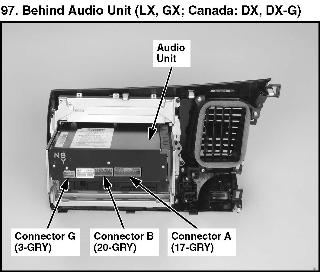 97. Behind Audio Unit (LX, GX; Canada: DX, DX-G):
