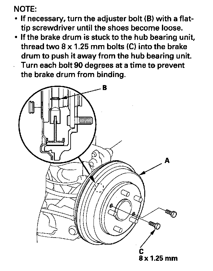 Rear Brake Drum ReplacementNOTE: Keep any grease off the brake drum and brake shoes.