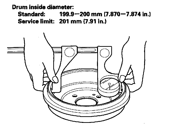 10. If the inside diameter of the brake drum is more than the service limit, replace the brake drum.