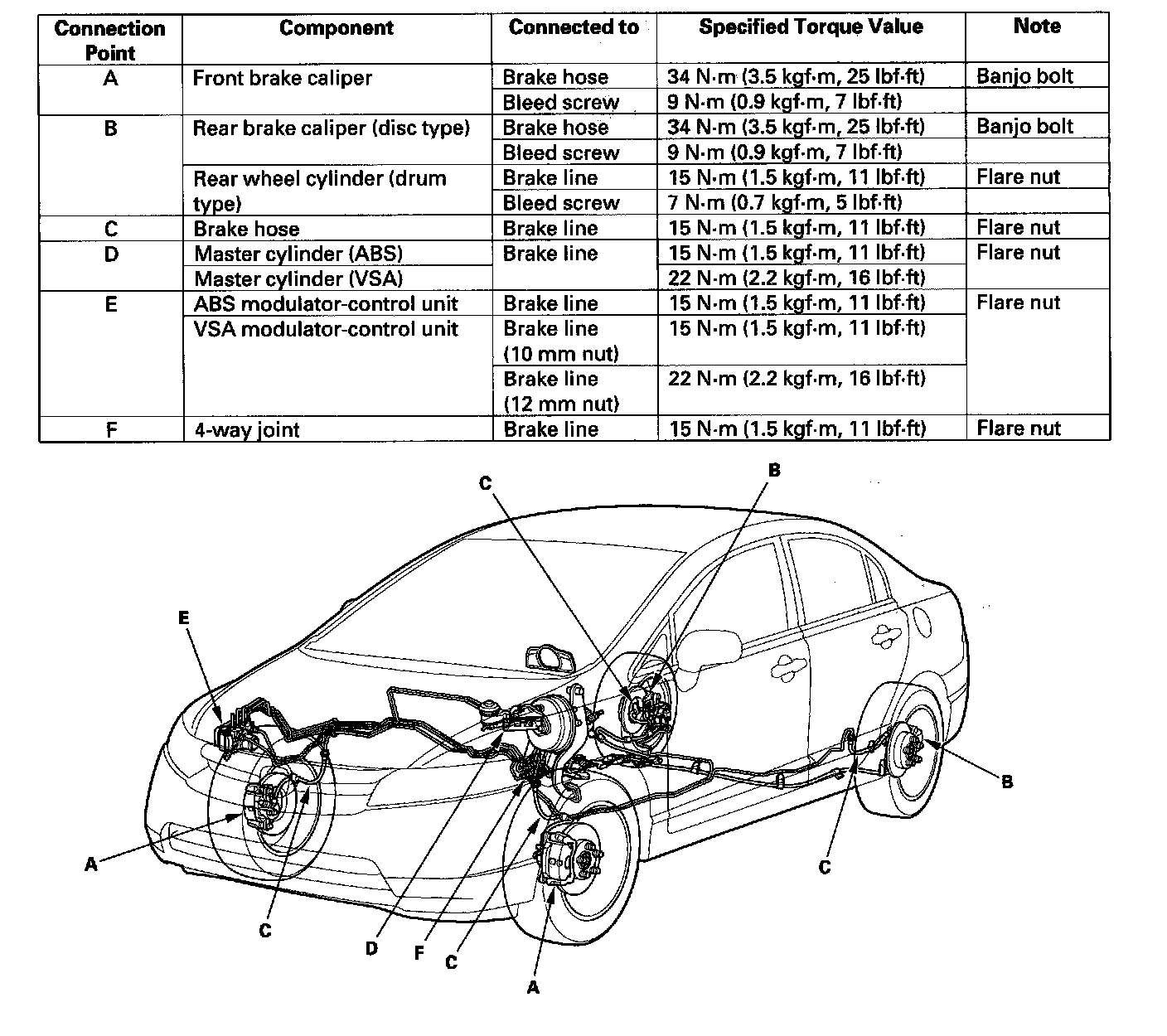 4. Check the master cylinder and the ABS or VSA modulator-control unit for damage and leaks.