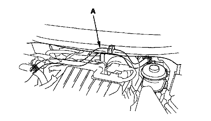 3. Disconnect the brake booster vacuum hose (A) at the booster. The check valve is built into the hose.
