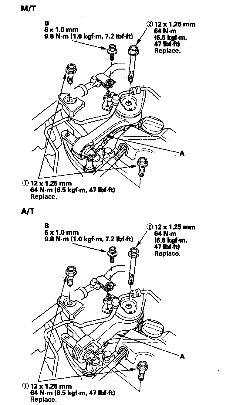 Lower Torque Rod Replacement1. Loosen the upper torque rod mounting bolt (A).