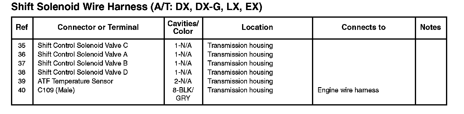 Shift Solenoid Wire Harness (A/T: DX, DX-G, LX, EX):