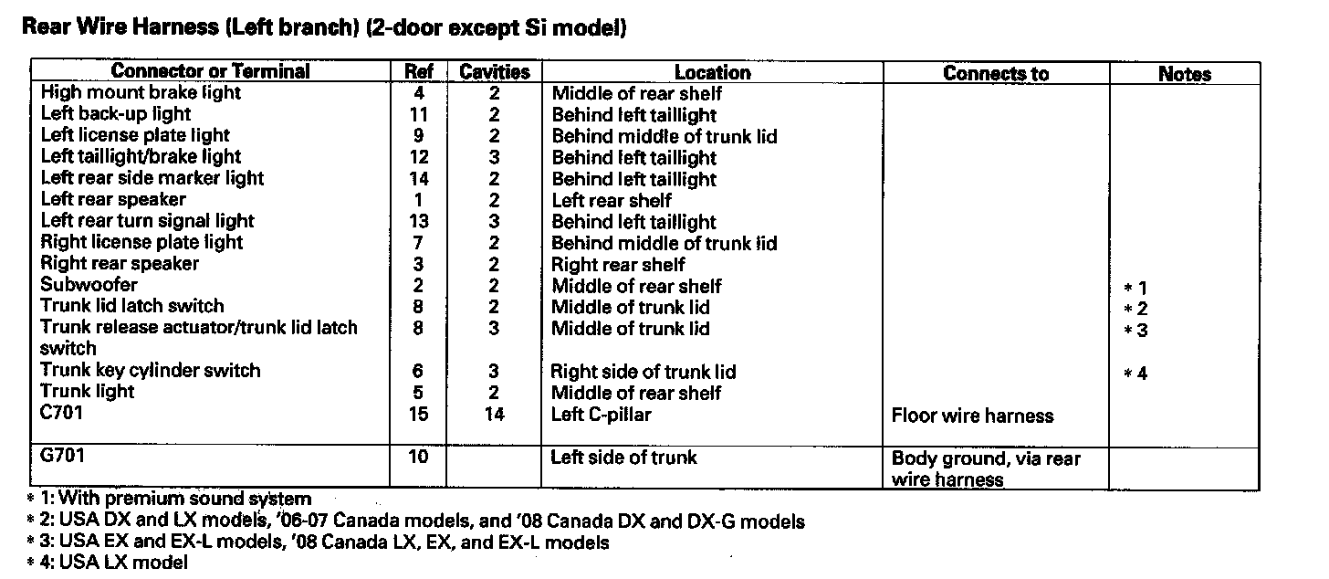 Rear Wire Harness (Left Branch) (2-Door Except Si Model)