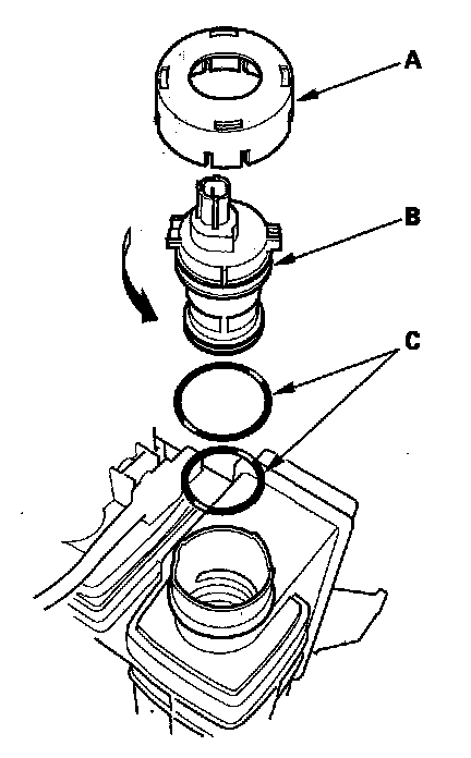 4. Install the parts in the reverse order of removal with new O-rings (C) and a new cap.