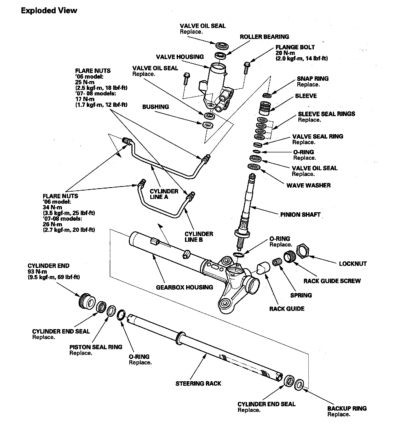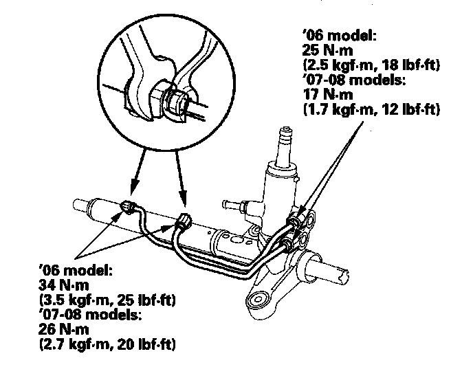 9. Drain the fluid from the cylinder fittings by slowly moving the steering rack back and forth.