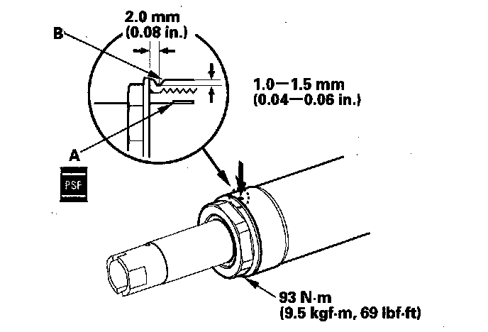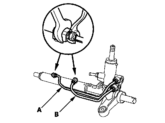 83. Bend the lock washer (A) back against the flat spots (B) on the rack end joint housing.