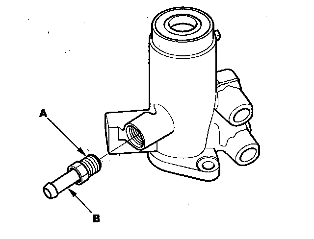 22. Loosen the 16 mm flange nut (A), and remove the return line joint (B).