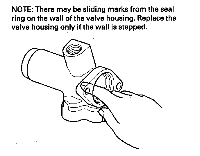 23. With your finger, check the inner wall of the valve housing where the seal ring slides. If there is a step in the wall, the housing is worn. Replace it.