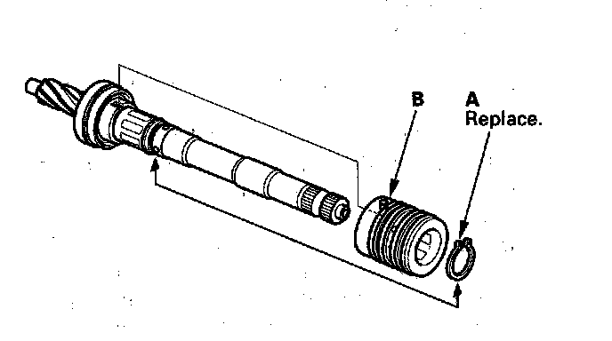 25. Remove the snap ring (A) and sleeve (B) from the pinion shaft.
