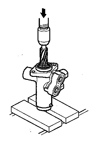 ^ Keep the tool straight to avoid damaging the cylinder wall. Check the tool angle, and correct it if necessary; when removing the cylinder end seal.