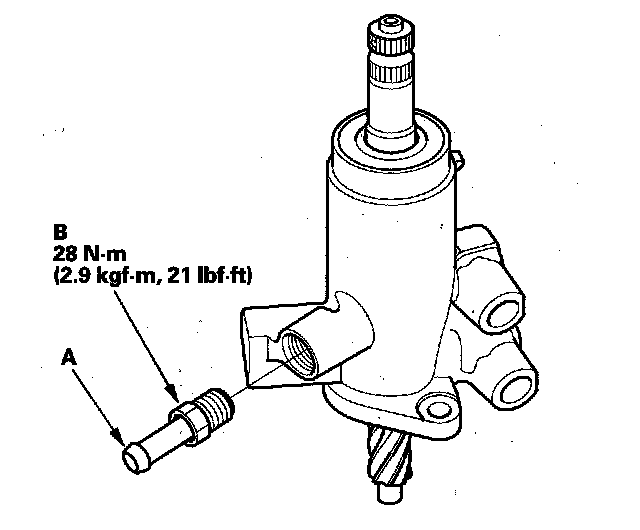 71. Coat the inside surface of the cylinder end (A) with power steering fluid, then install the cylinder end by screwing it into the cylinder (B). Tighten the cylinder end to the specified torque.