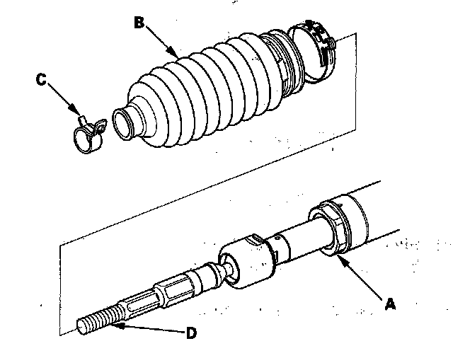 88. After installing the boots, wipe the grease off the threaded section (D) of the rack end.