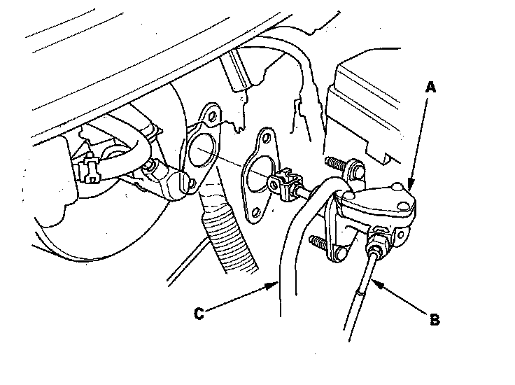 12. Remove the clutch master cylinder (A) with the clutch line (B) and the reservoir hose (C).