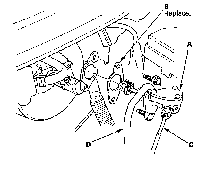 18. Install the clutch master cylinder (A) and a new clutch master cylinder seal (B) with the clutch line (C) and the reservoir hose (D).