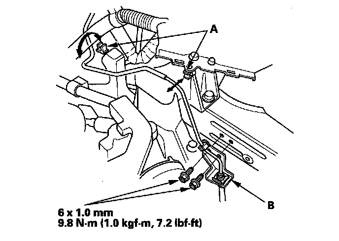20. Install the clutch line bracket (B).